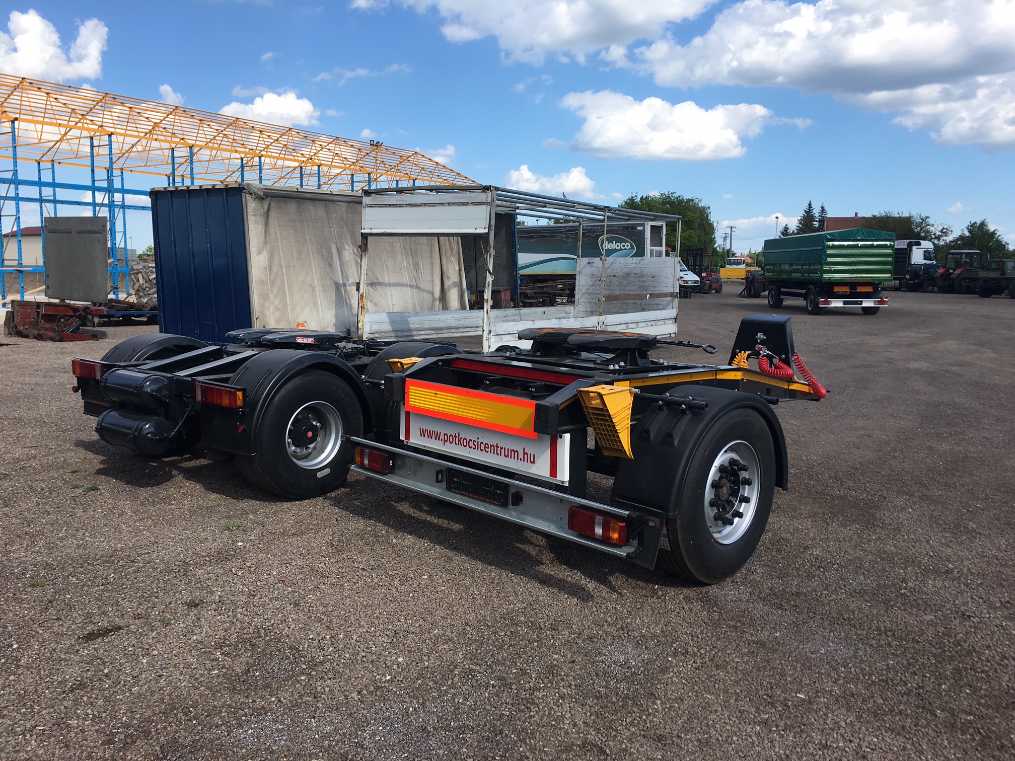 Mindig változó raktárkészletről kettő vagy három tengelyes kivitelben. Új és használt felépítményekkel szerelve teljes felújítás után festve, homok szórva, ponyvázva. Igény esetén csak alvázat is tudunk biztosítani. Az új felépítményes pótkocsikra gyártói garanciát vállalunk nem csak ígéretet! Bármilyen öreg, sérült, hiányos pótkocsiját beszámítjuk. Vállaljuk gépjárművek, vagy bármilyen speciális gépek, pótkocsik, beszerzését külföldről is! Autó BESZÁMÍTÁS, CSERE egyes gépjárműveknél lehetséges. Bizományos értékesítésre gépjárműveket, pótkocsikat átveszünk, tárolási díj nélkül.